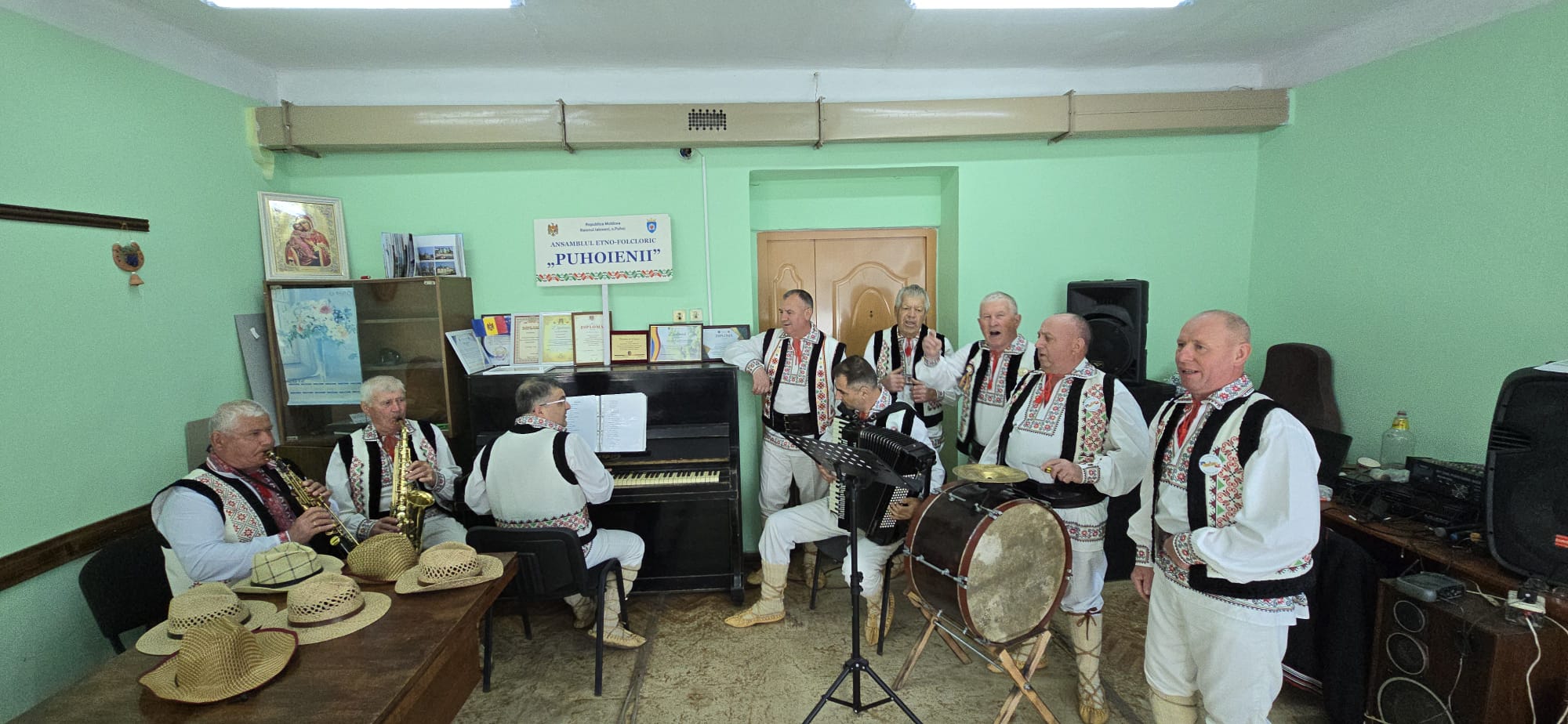 Tradiția, dorul de neam, de cântec vine din străbuni. Localnicii au iubit pentru totdeauna deauna cântecul, tradiția și voia bună. Folclorul-(obiceiurile,ritualurile,cântecele de nuntă,bocetele),moștenite de la strămoșii noștri, ne ține împreună uniți ca popor, ca neam. Încă în mileniul trecut, d-ul Vasile Caterev și surorile Eudochia și Anastasia cântau pe la sărbătorile satului, tradiție preluată de la părinții lor. Eudochia a cântat de când se știa dânsa în biserica satului fiind dăscăliță. Împreună cu câțiva prieteni și cumetri, care s-au alăturat la acel trio, ei au mers și la festivaluri raionale. Apoi a fost un ansmblu mixt(bărbați-femei) înființat în 2012 de Vasile Caterev cu numele "Mărgăritarele". Începând cu anul 2017 bărbații au creat un alt grup folcloric și anume "Puhoienii". Din acel grup făceau parte: